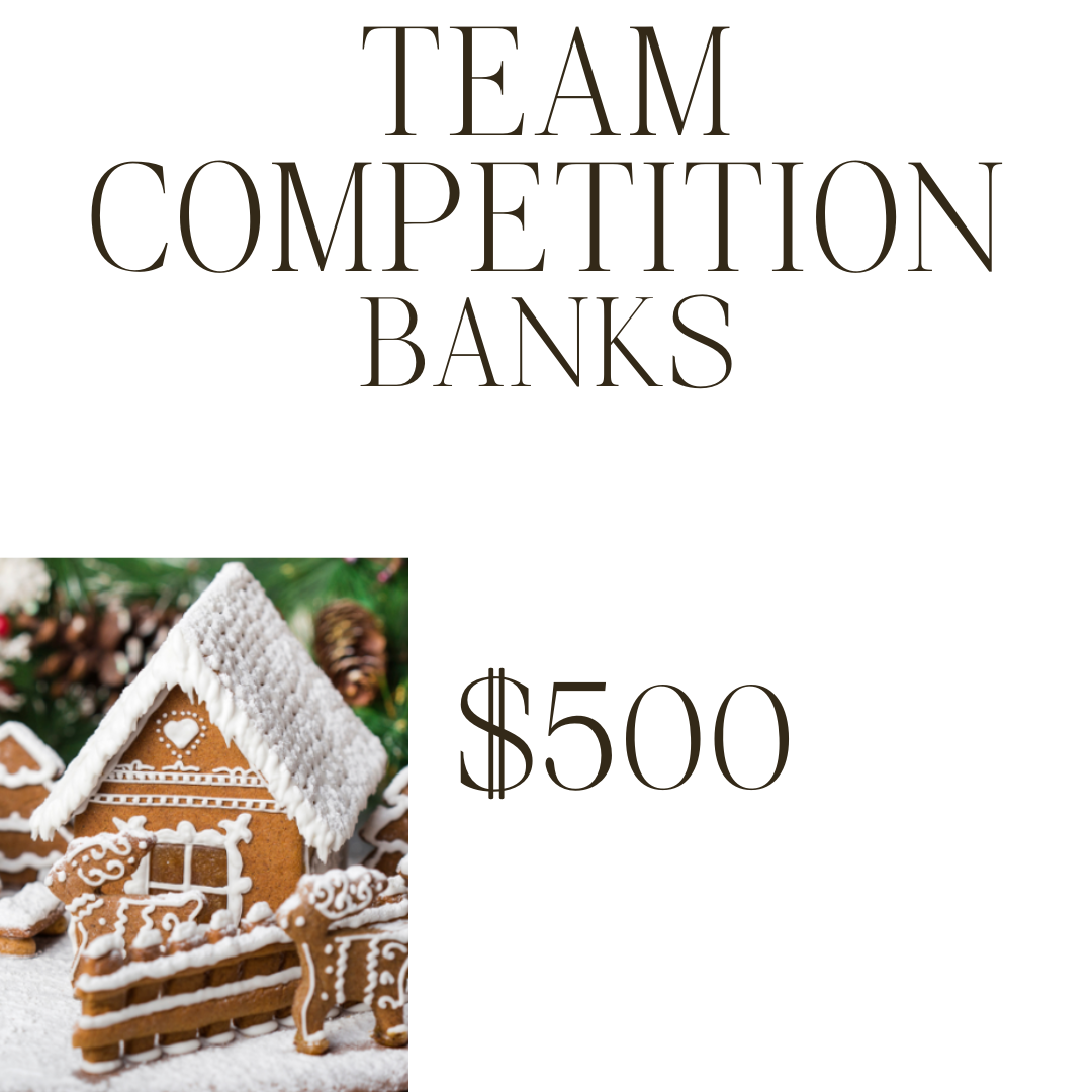 Team Competition - Banks. Each team consists of up to 4 members. If you have more than 4 team members, you can add a team.